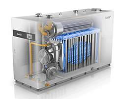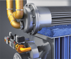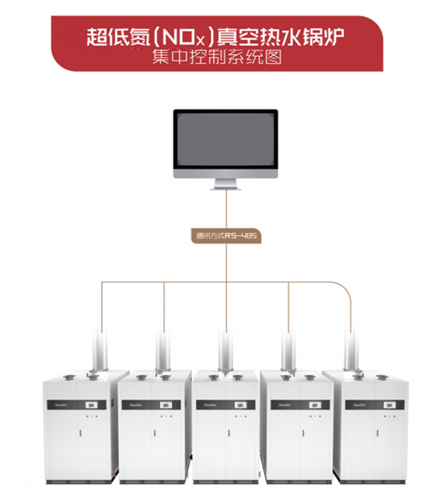 强制送风全预混水冷超低氮(NOX)大型平面燃烧技术结合管束式炉体,以及二级冷凝回收技术,排烟温度低至50℃以下,效率高达103%。